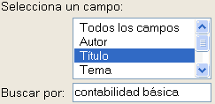 2. En Por palabra clave escoge el campo donde deseas buscar. Ej., Título