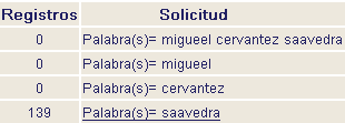 La pantalla Permutar búsqueda aparece con el número de registros existentes para cada una de las palabras que solicitaste.